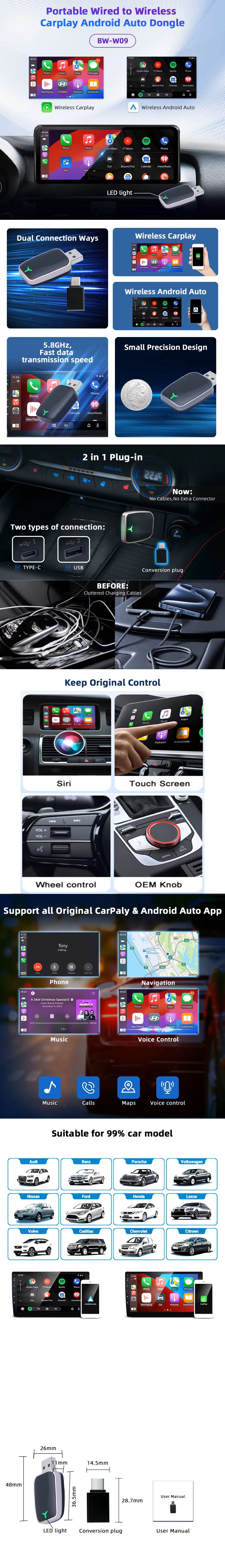 دانگل کارپلی و اندروید اوتو CarPlay & Android Auto Adapter BW-W09